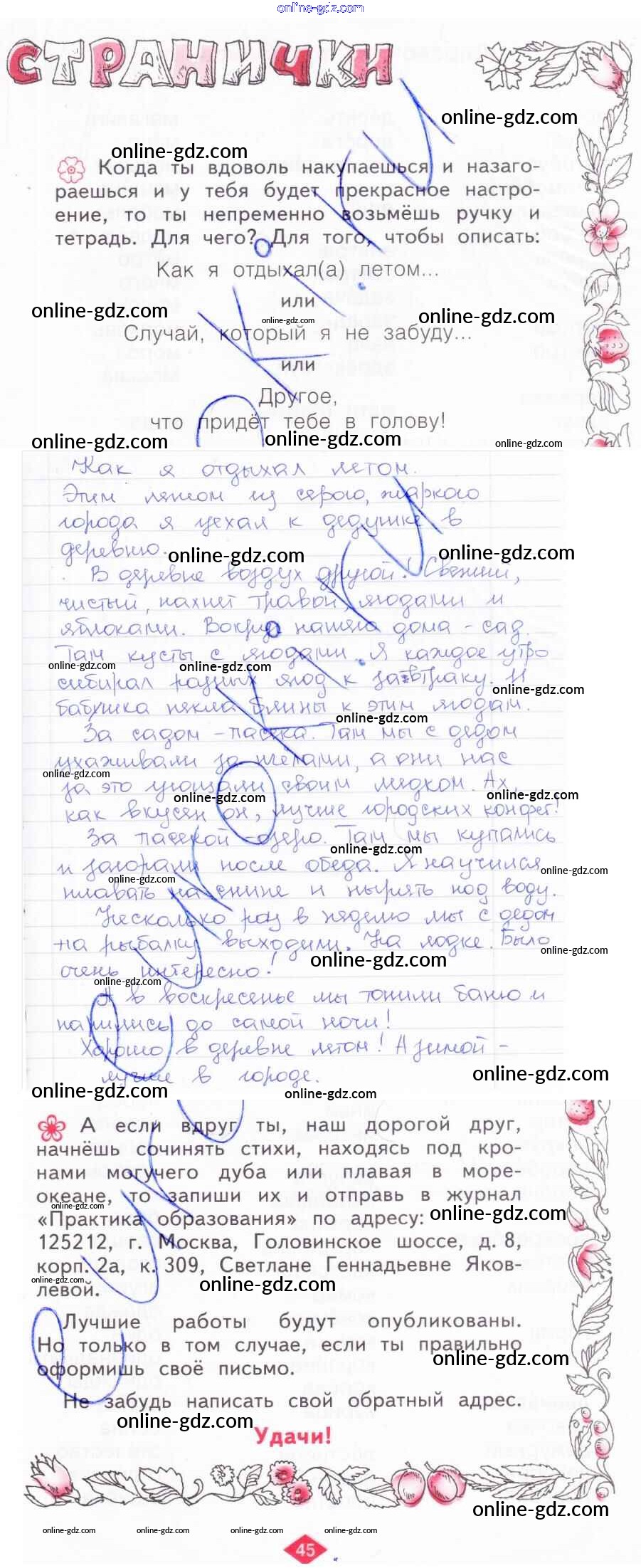 Готовые домашние задания по Русскому языку за 2 класс Рабочая тетрадь Яковлева 2015 - Часть 4. Страницы 45