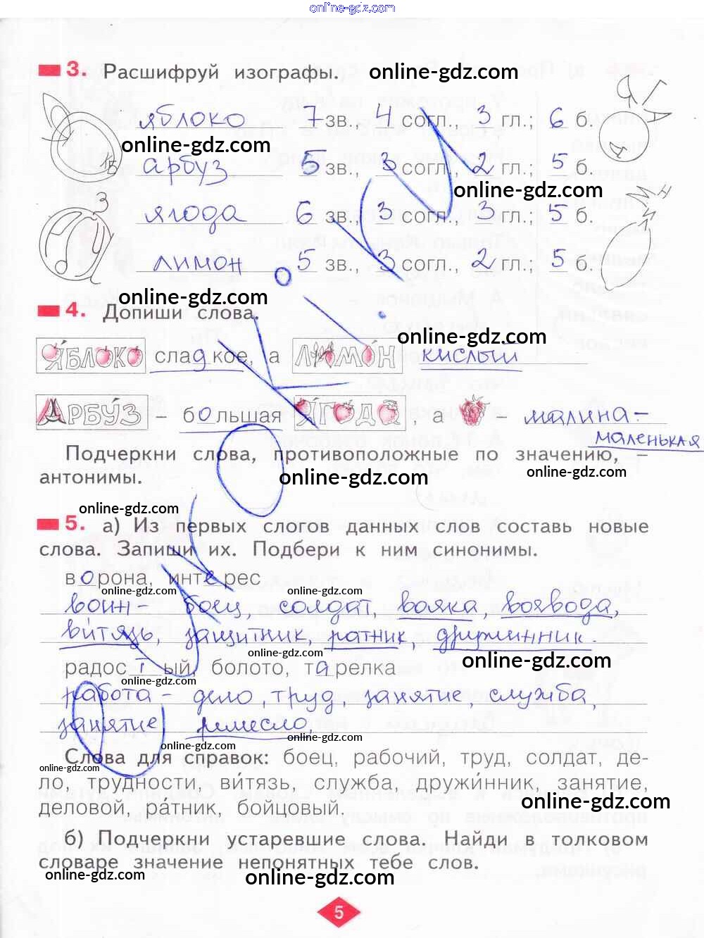 Готовые домашние задания по Русскому языку за 2 класс Рабочая тетрадь Яковлева 2015 - Часть 4. Страницы 5