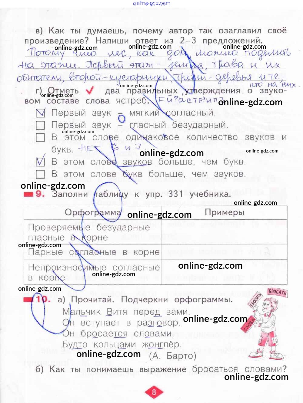 Готовые домашние задания по Русскому языку за 2 класс Рабочая тетрадь Яковлева 2015 - Часть 4. Страницы 8
