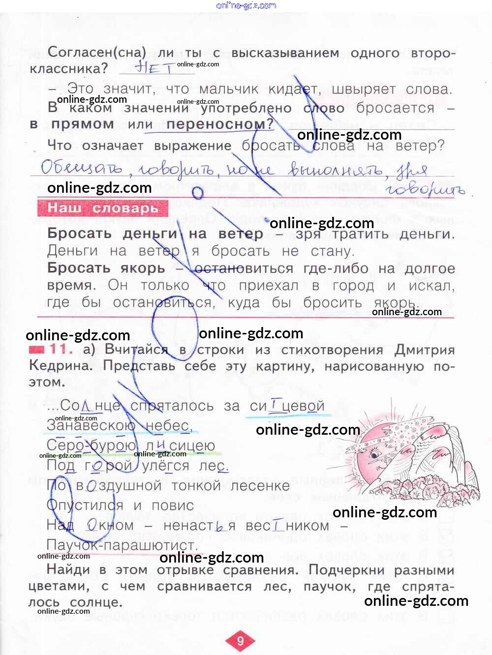 Готовые домашние задания по Русскому языку за 2 класс Рабочая тетрадь Яковлева 2015 - Часть 4. Страницы 9