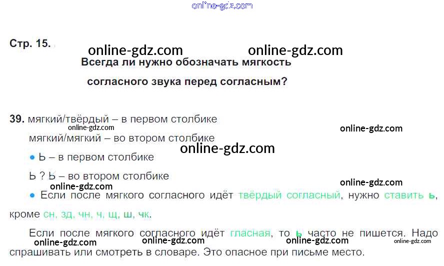 Готовые домашние задания по Русскому языку за 2 класс Рабочая тетрадь Соловейчик, Кузьменко Гармония 2012 - Часть 1. Страницы 15