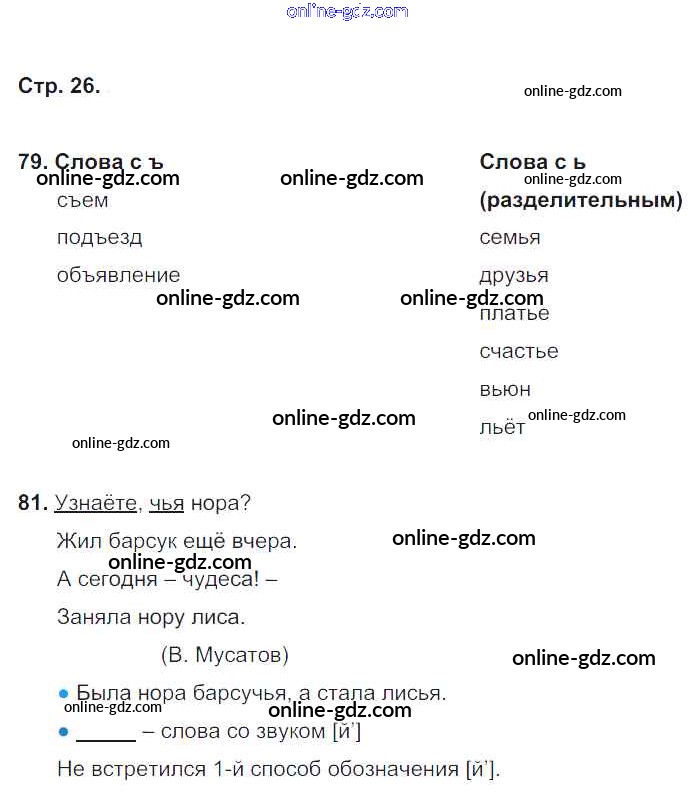Готовые домашние задания по Русскому языку за 2 класс Рабочая тетрадь Соловейчик, Кузьменко Гармония 2012 - Часть 1. Страницы 26