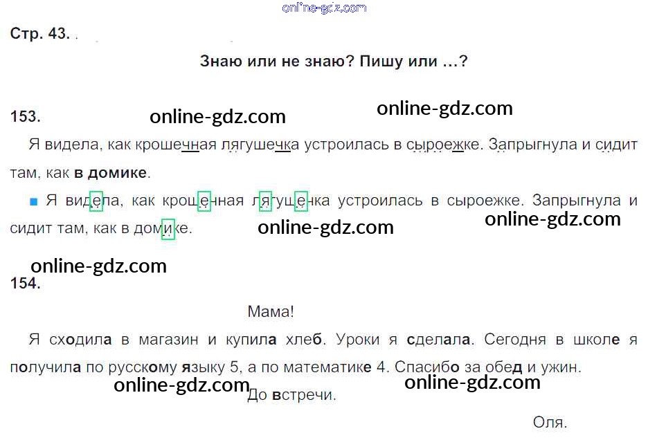 Готовые домашние задания по Русскому языку за 2 класс Рабочая тетрадь Соловейчик, Кузьменко Гармония 2012 - Часть 1. Страницы 43