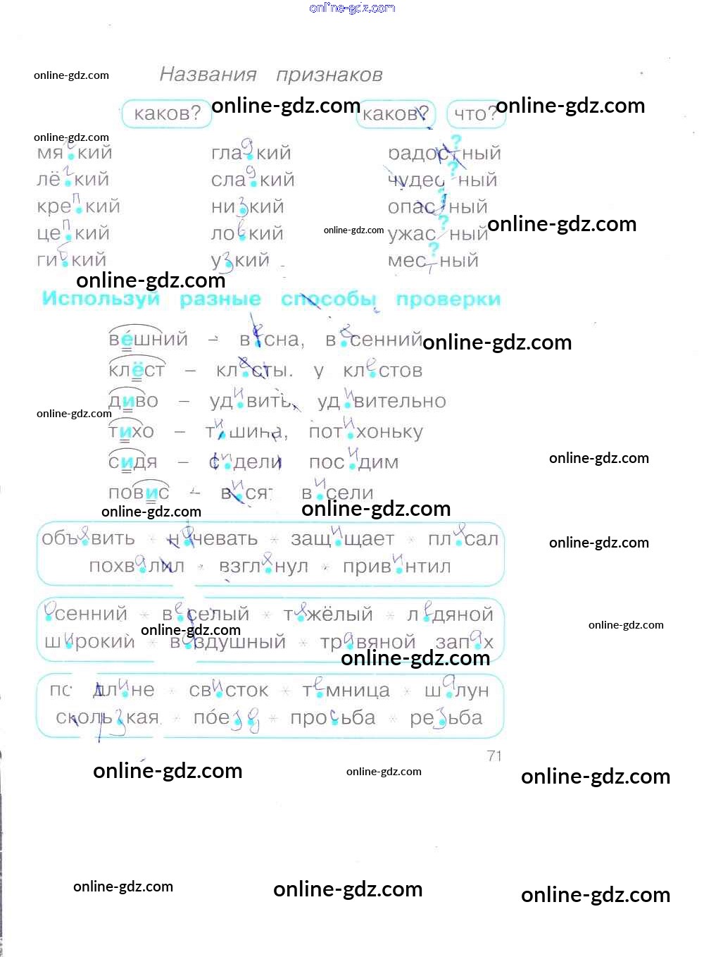 Готовые домашние задания по Русскому языку за 2 класс Рабочая тетрадь Соловейчик, Кузьменко Гармония 2012 - Часть 1. Страницы 71