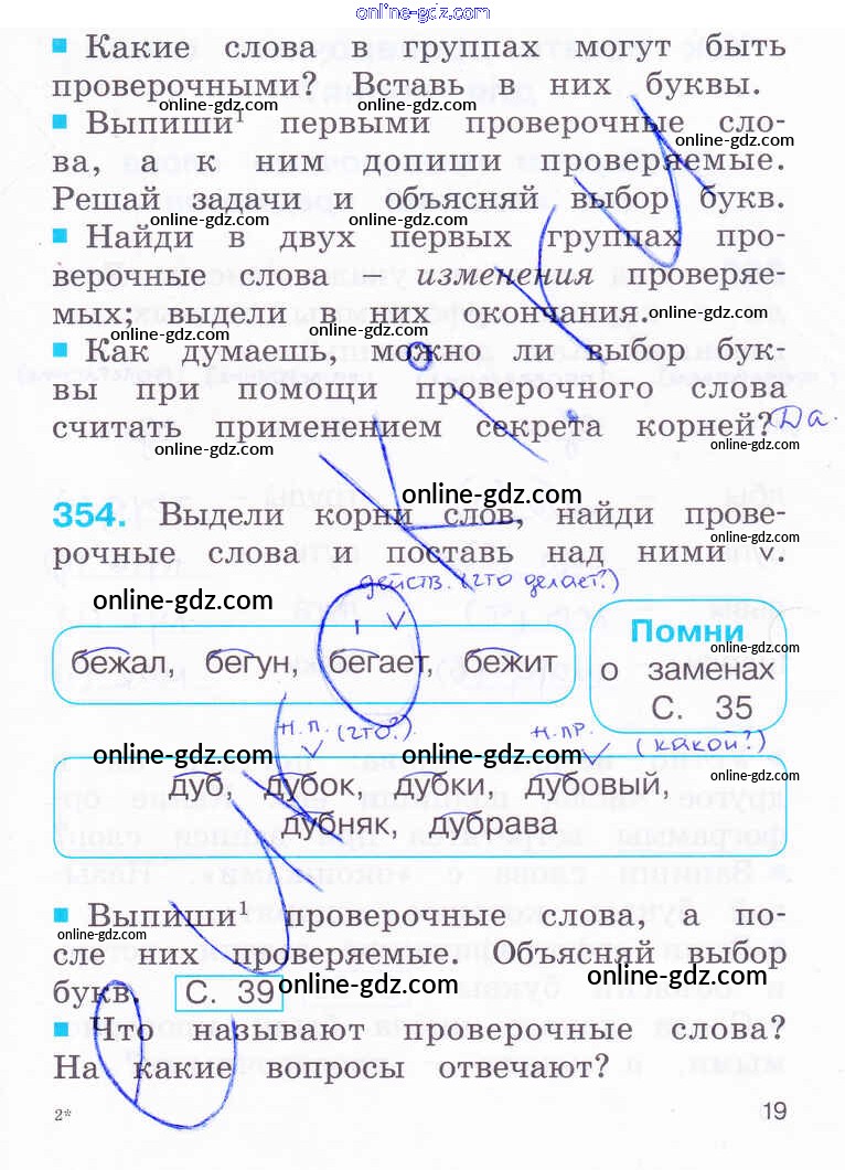 Готовые домашние задания по Русскому языку за 2 класс Рабочая тетрадь Соловейчик, Кузьменко Гармония 2012 - Часть 2. Страницы 19