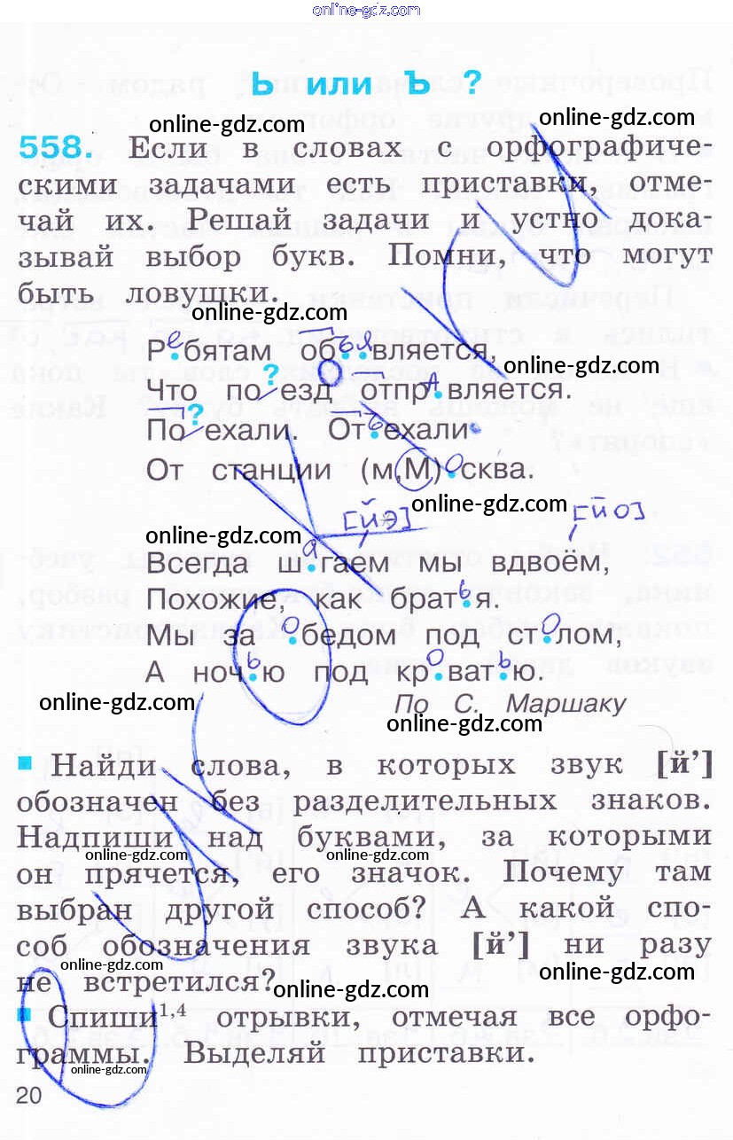 Готовые домашние задания по Русскому языку за 2 класс Рабочая тетрадь Соловейчик, Кузьменко Гармония 2012 - Часть 2. Страницы 20