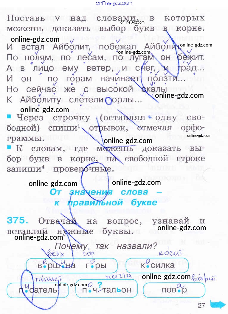 Готовые домашние задания по Русскому языку за 2 класс Рабочая тетрадь Соловейчик, Кузьменко Гармония 2012 - Часть 2. Страницы 27