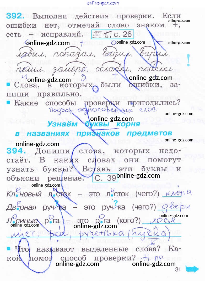 Готовые домашние задания по Русскому языку за 2 класс Рабочая тетрадь Соловейчик, Кузьменко Гармония 2012 - Часть 2. Страницы 31