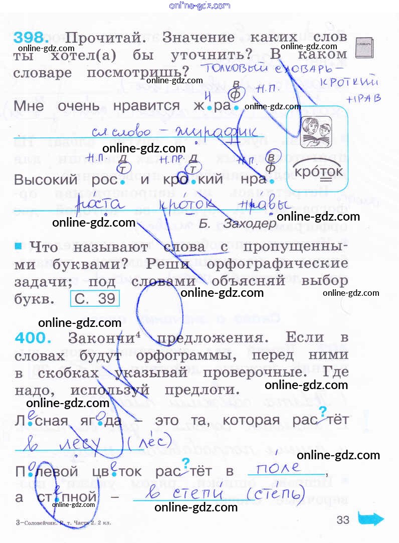 Готовые домашние задания по Русскому языку за 2 класс Рабочая тетрадь Соловейчик, Кузьменко Гармония 2012 - Часть 2. Страницы 33