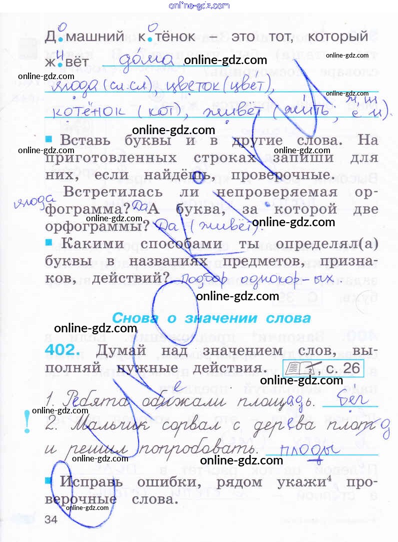 Готовые домашние задания по Русскому языку за 2 класс Рабочая тетрадь Соловейчик, Кузьменко Гармония 2012 - Часть 2. Страницы 34