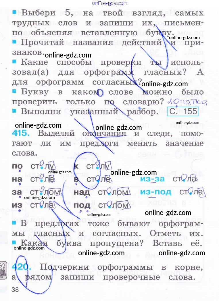 Готовые домашние задания по Русскому языку за 2 класс Рабочая тетрадь Соловейчик, Кузьменко Гармония 2012 - Часть 2. Страницы 38