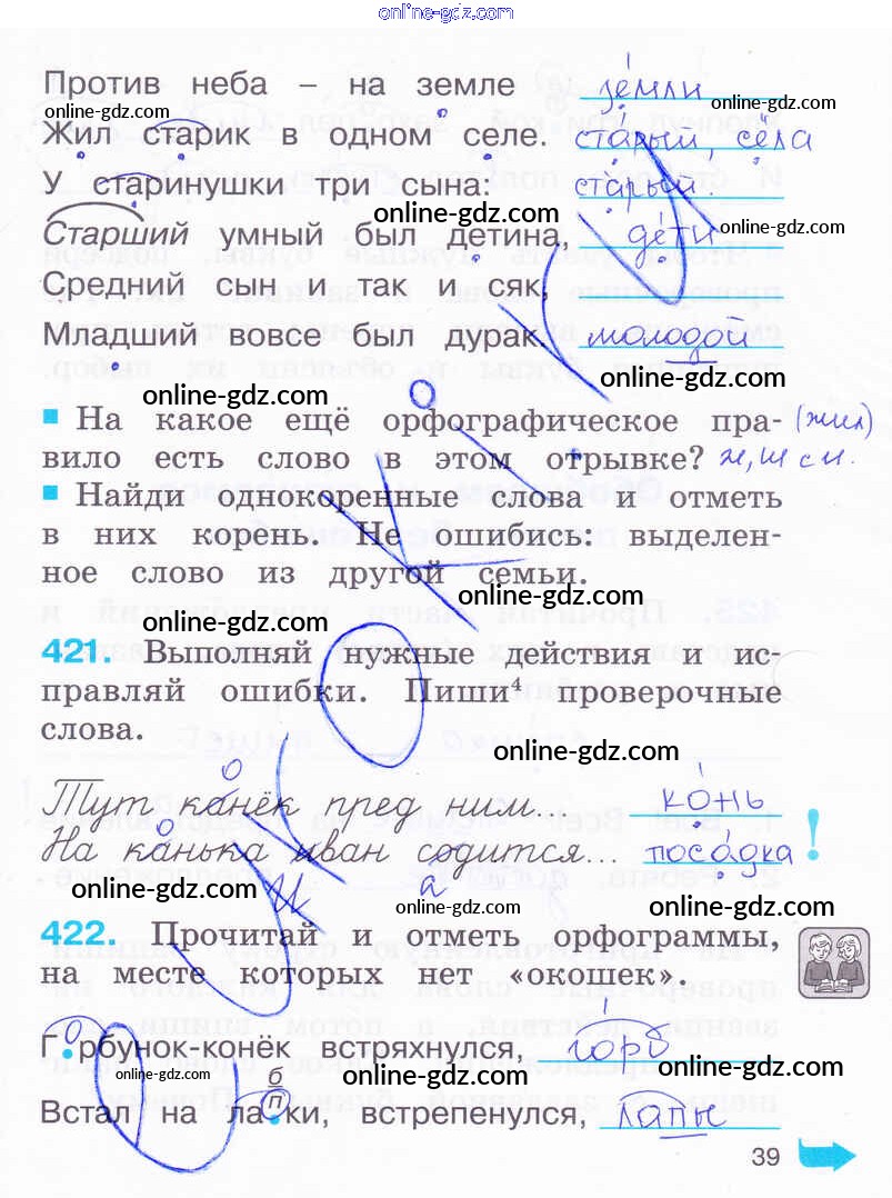 Готовые домашние задания по Русскому языку за 2 класс Рабочая тетрадь Соловейчик, Кузьменко Гармония 2012 - Часть 2. Страницы 39