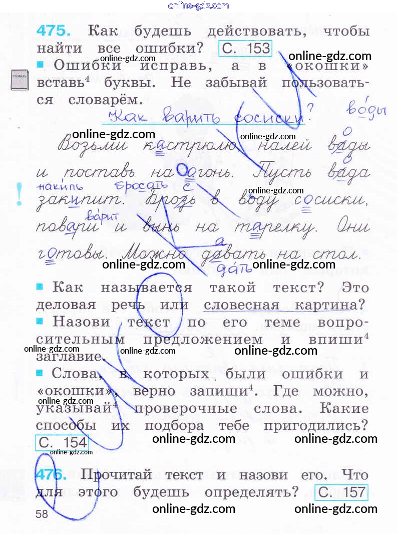 Готовые домашние задания по Русскому языку за 2 класс Рабочая тетрадь Соловейчик, Кузьменко Гармония 2012 - Часть 2. Страницы 58