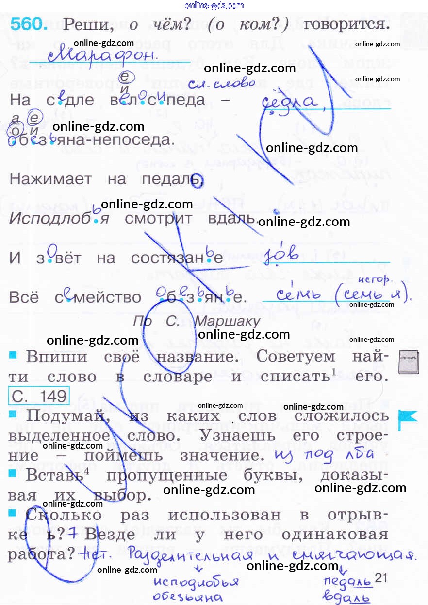 Готовые домашние задания по Русскому языку за 2 класс Рабочая тетрадь Соловейчик, Кузьменко Гармония 2012 - Часть 3. Страницы 21
