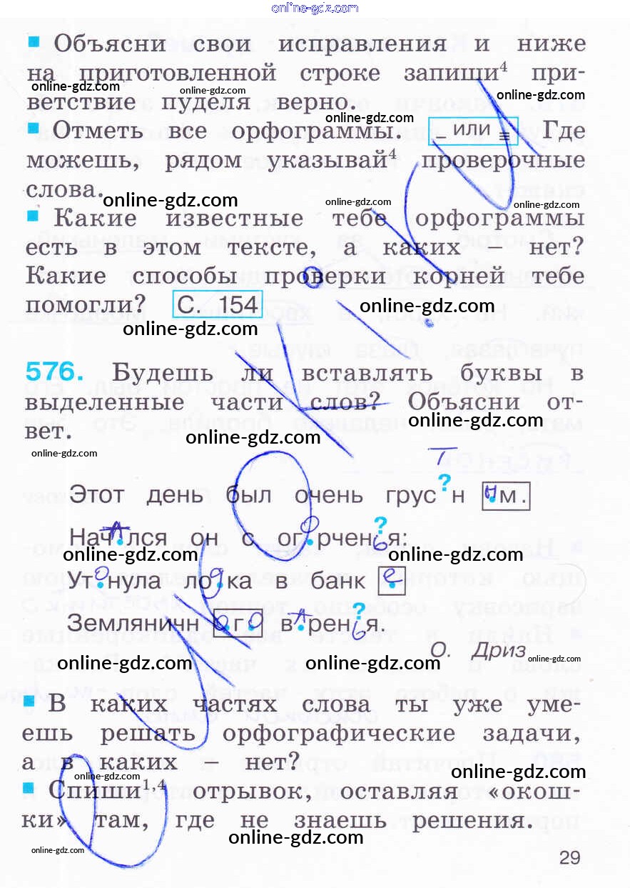 Готовые домашние задания по Русскому языку за 2 класс Рабочая тетрадь Соловейчик, Кузьменко Гармония 2012 - Часть 3. Страницы 29