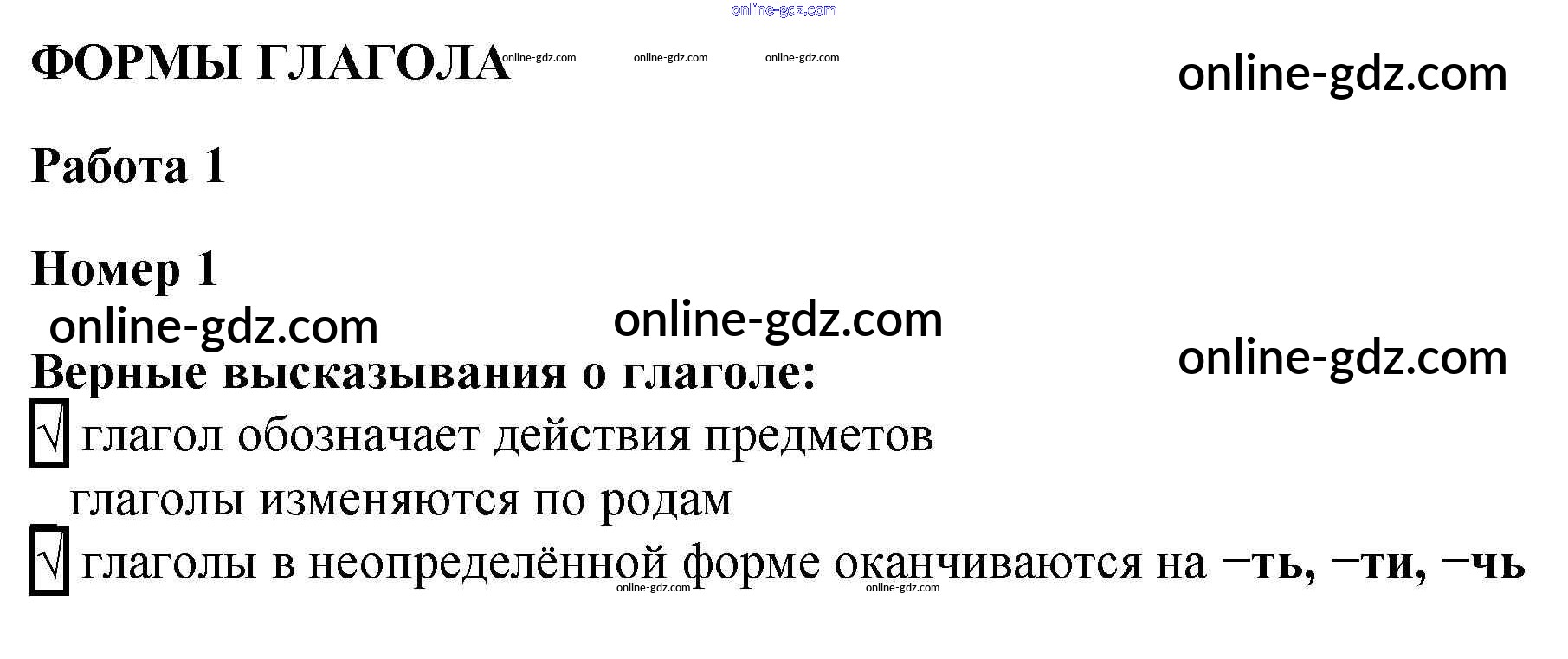 Готовые домашние задания по Русскому языку за 3 класс Контрольные работы Крылова УМК 2023 - Работа 1 (Номера) Формы глагола (Работы) 1