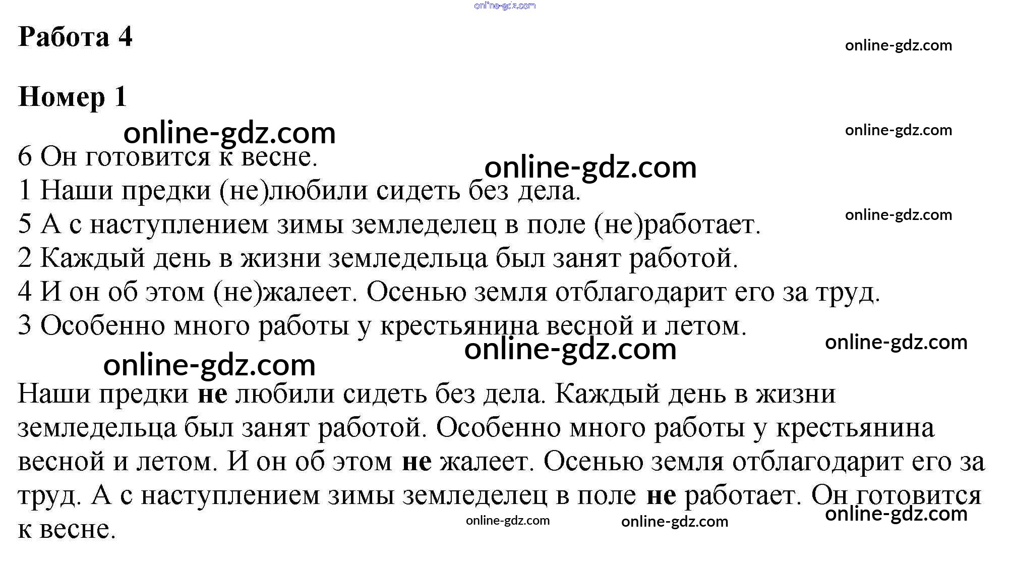 Готовые домашние задания по Русскому языку за 3 класс Контрольные работы Крылова УМК 2023 - Работа 4 (Номера) Правописание не с глаголами (Работы) 1