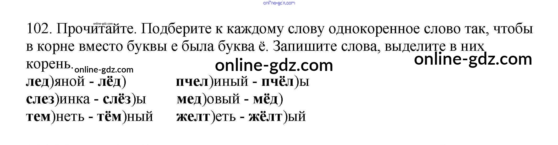 Готовые домашние задания по Русскому языку за 3 класс Рабочая тетрадь Канакина Школа России 2012 - Часть 1. Упражнения 102