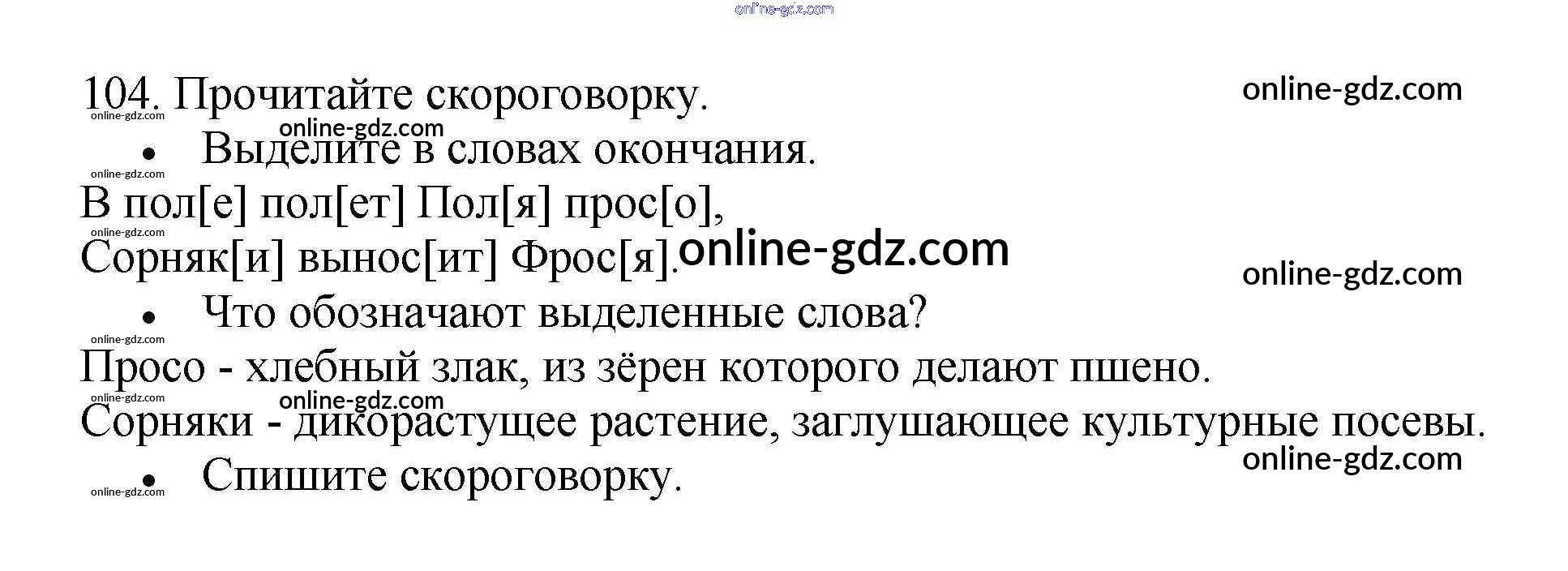 Готовые домашние задания по Русскому языку за 3 класс Рабочая тетрадь Канакина Школа России 2012 - Часть 1. Упражнения 104