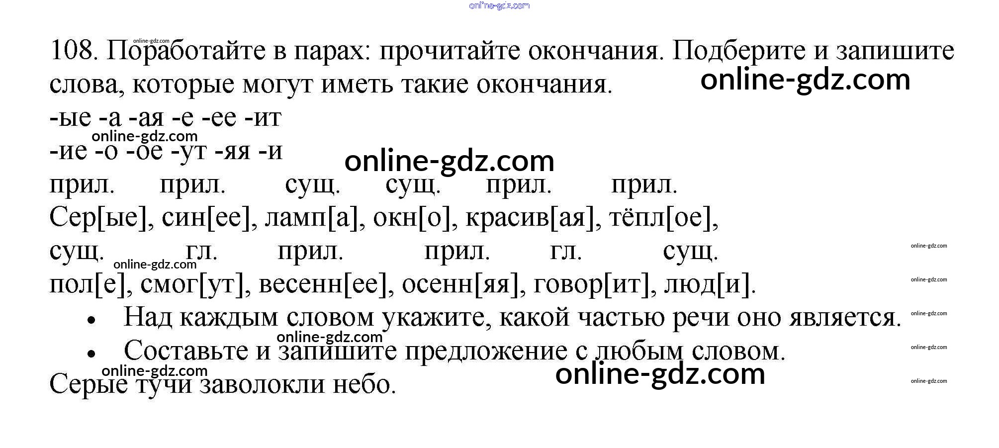 Готовые домашние задания по Русскому языку за 3 класс Рабочая тетрадь Канакина Школа России 2012 - Часть 1. Упражнения 108