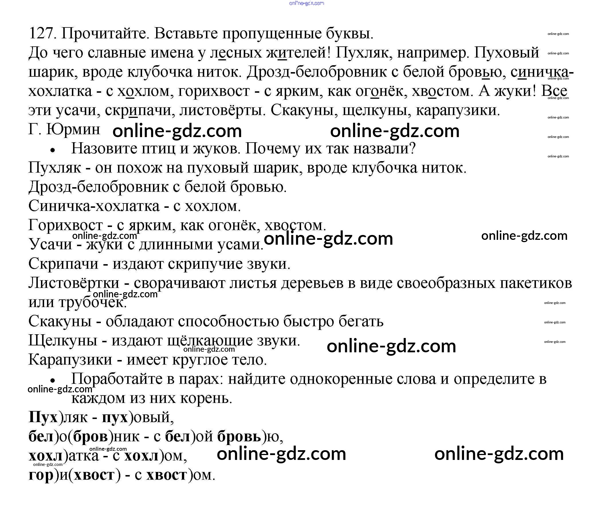 Готовые домашние задания по Русскому языку за 3 класс Рабочая тетрадь Канакина Школа России 2012 - Часть 1. Упражнения 127