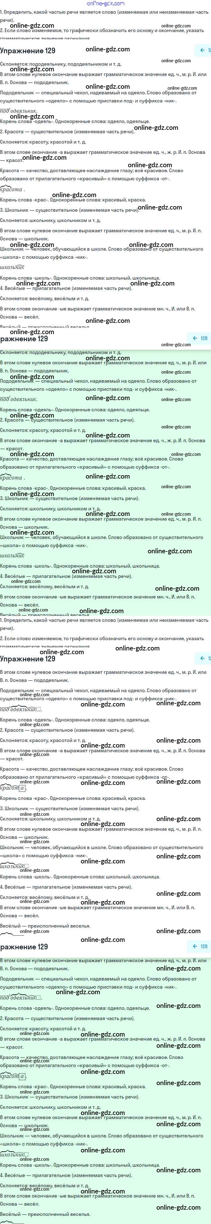 Готовые домашние задания по Русскому языку за 3 класс Рабочая тетрадь Канакина Школа России 2012 - Часть 1. Упражнения 129