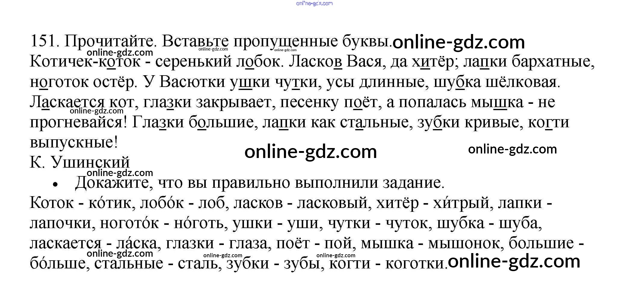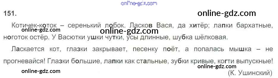 Готовые домашние задания по Русскому языку за 3 класс Рабочая тетрадь Канакина Школа России 2012 - Часть 1. Упражнения 151