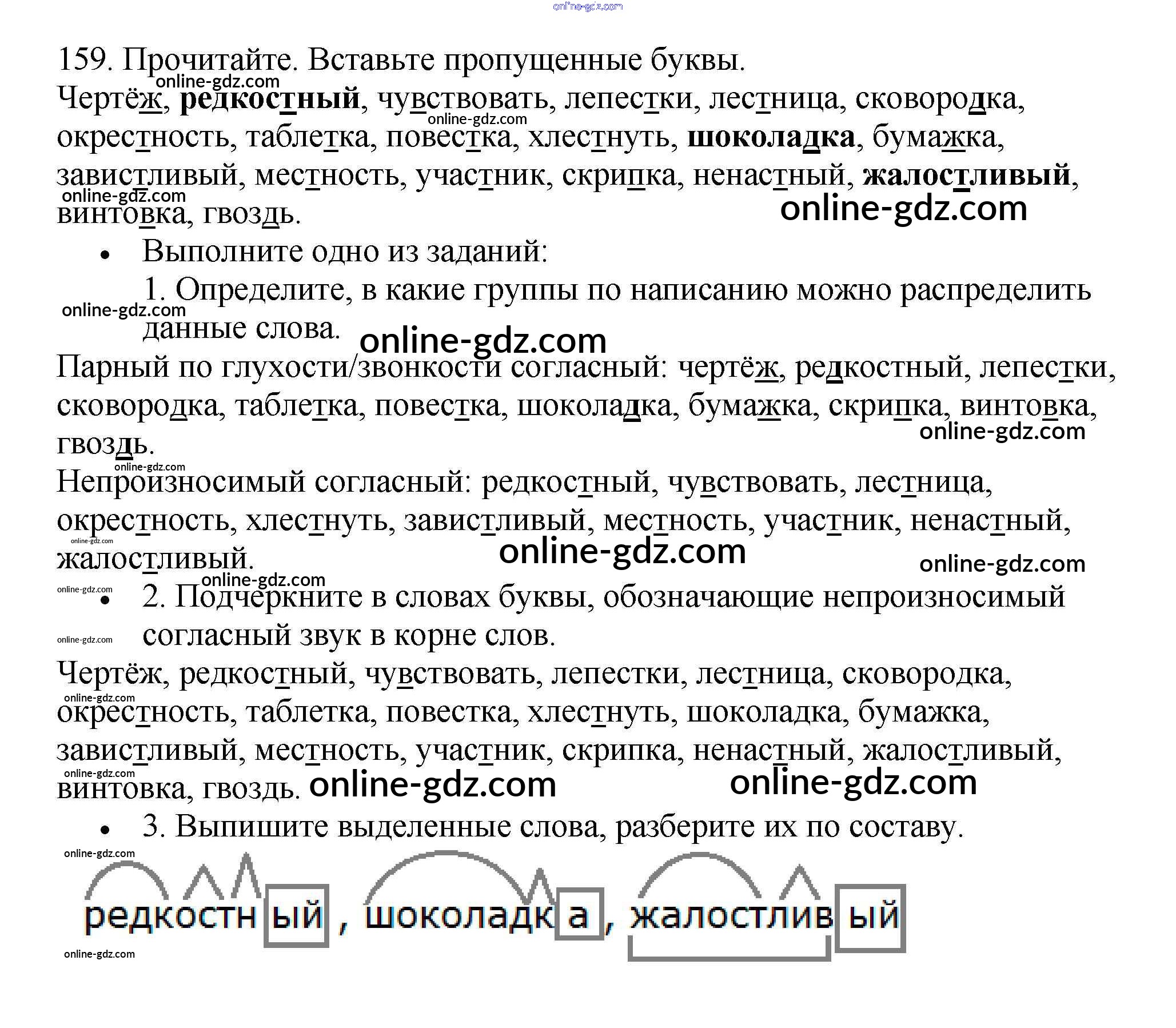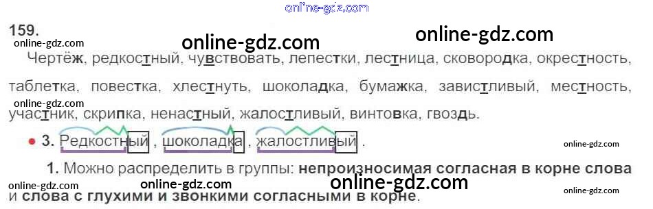 Готовые домашние задания по Русскому языку за 3 класс Рабочая тетрадь Канакина Школа России 2012 - Часть 1. Упражнения 159