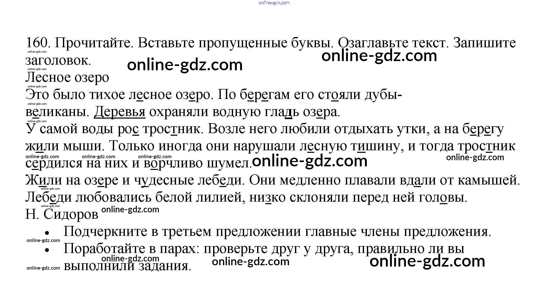 Готовые домашние задания по Русскому языку за 3 класс Рабочая тетрадь Канакина Школа России 2012 - Часть 1. Упражнения 160