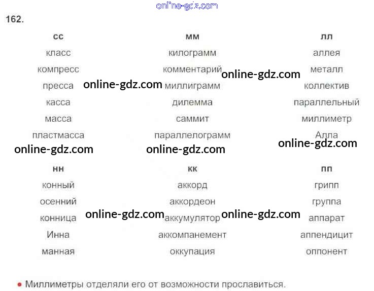 Готовые домашние задания по Русскому языку за 3 класс Рабочая тетрадь Канакина Школа России 2012 - Часть 1. Упражнения 162