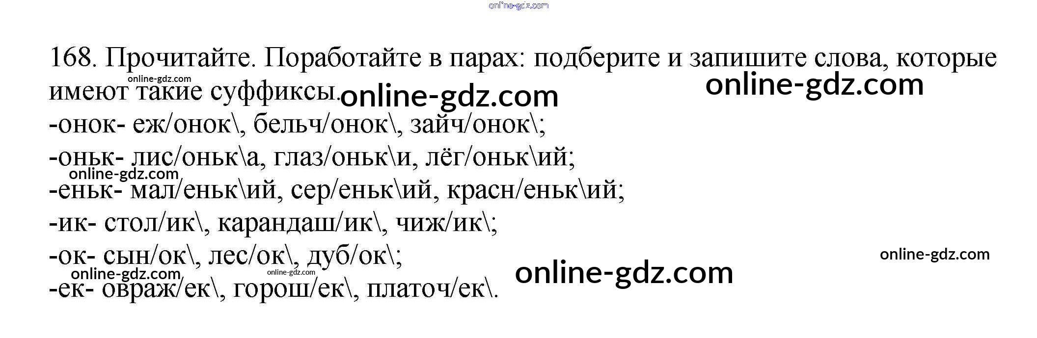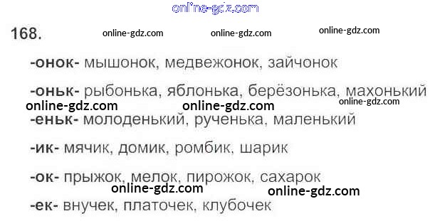 Готовые домашние задания по Русскому языку за 3 класс Рабочая тетрадь Канакина Школа России 2012 - Часть 1. Упражнения 168