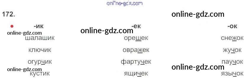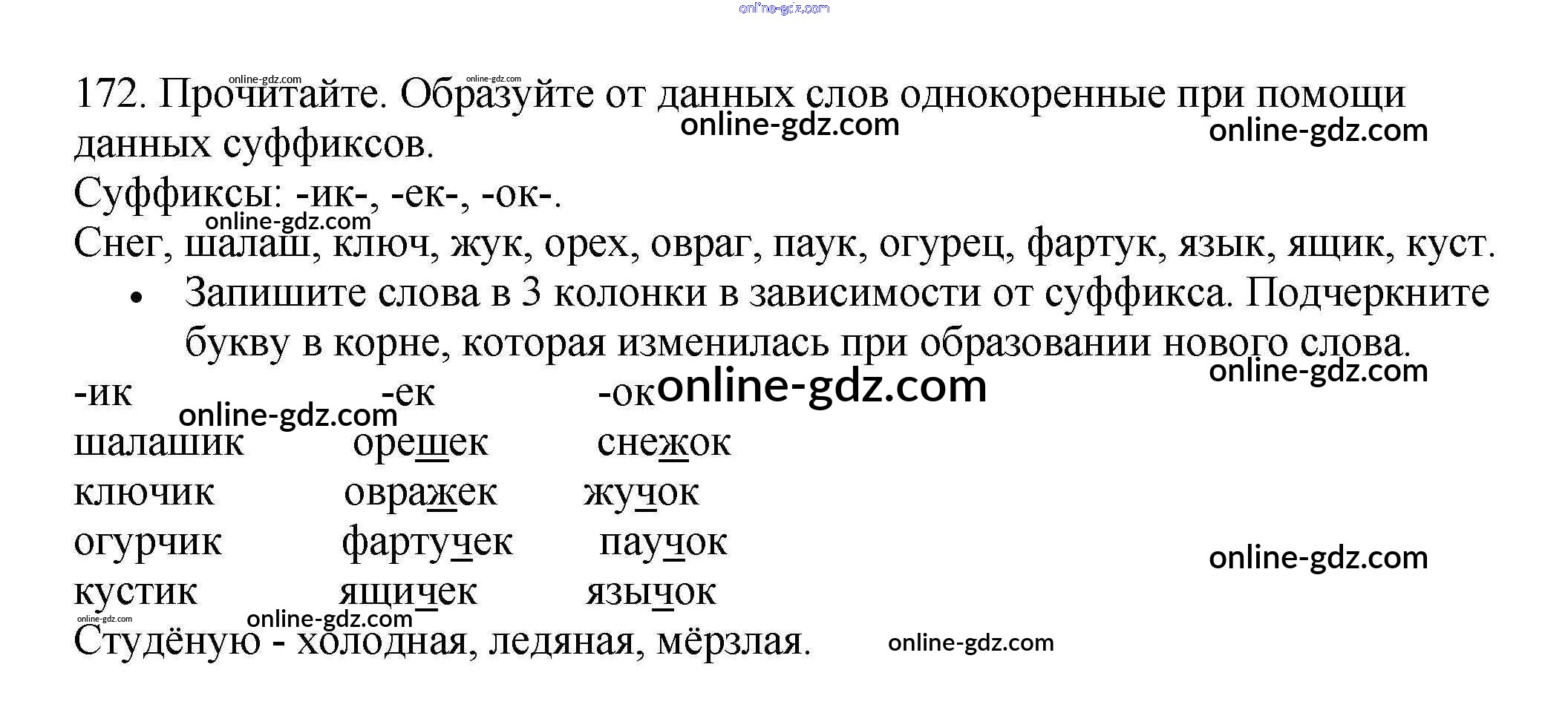 Готовые домашние задания по Русскому языку за 3 класс Рабочая тетрадь Канакина Школа России 2012 - Часть 1. Упражнения 172