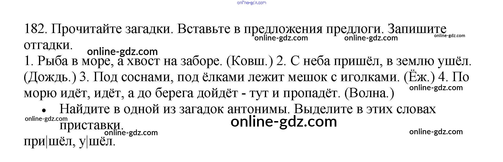 Готовые домашние задания по Русскому языку за 3 класс Рабочая тетрадь Канакина Школа России 2012 - Часть 1. Упражнения 182