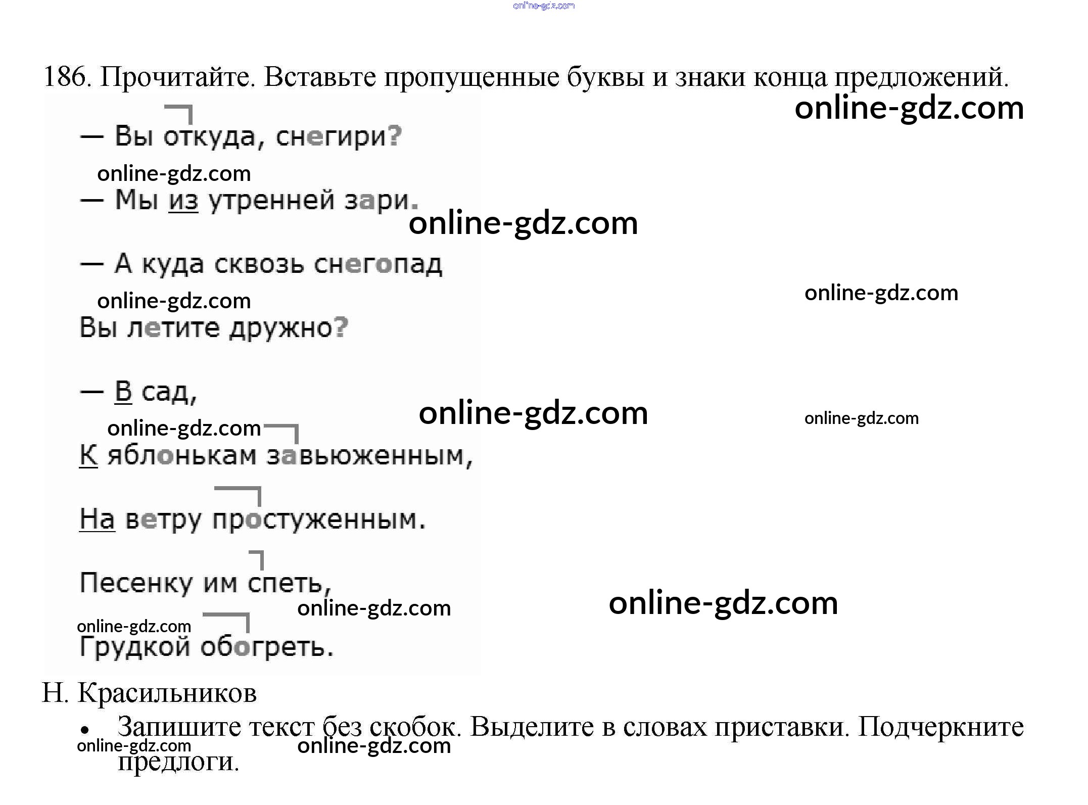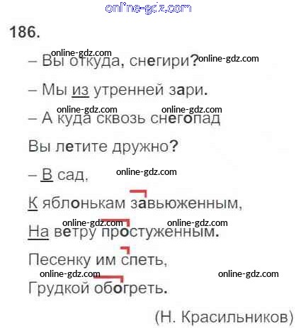Готовые домашние задания по Русскому языку за 3 класс Рабочая тетрадь Канакина Школа России 2012 - Часть 1. Упражнения 186