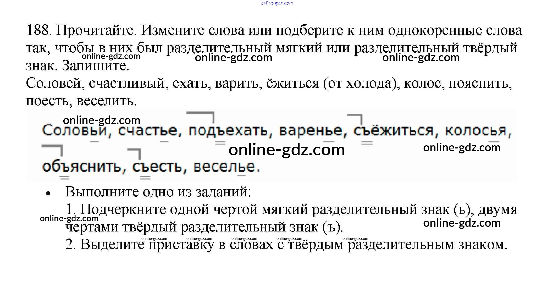 Готовые домашние задания по Русскому языку за 3 класс Рабочая тетрадь Канакина Школа России 2012 - Часть 1. Упражнения 188
