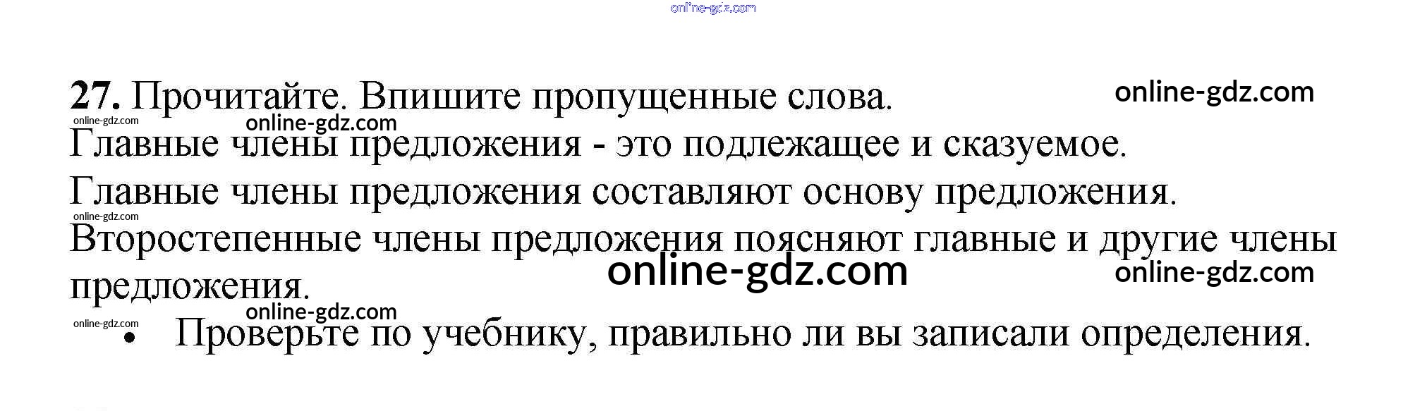 Готовые домашние задания по Русскому языку за 3 класс Рабочая тетрадь Канакина Школа России 2012 - Часть 1. Упражнения 27