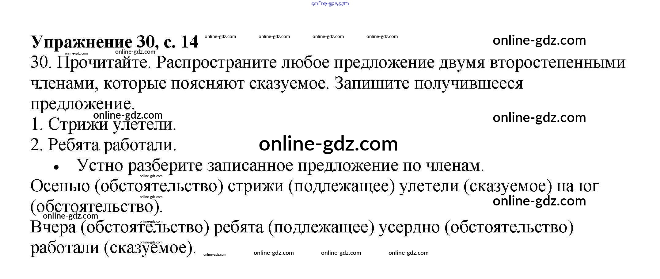 Готовые домашние задания по Русскому языку за 3 класс Рабочая тетрадь Канакина Школа России 2012 - Часть 1. Упражнения 30
