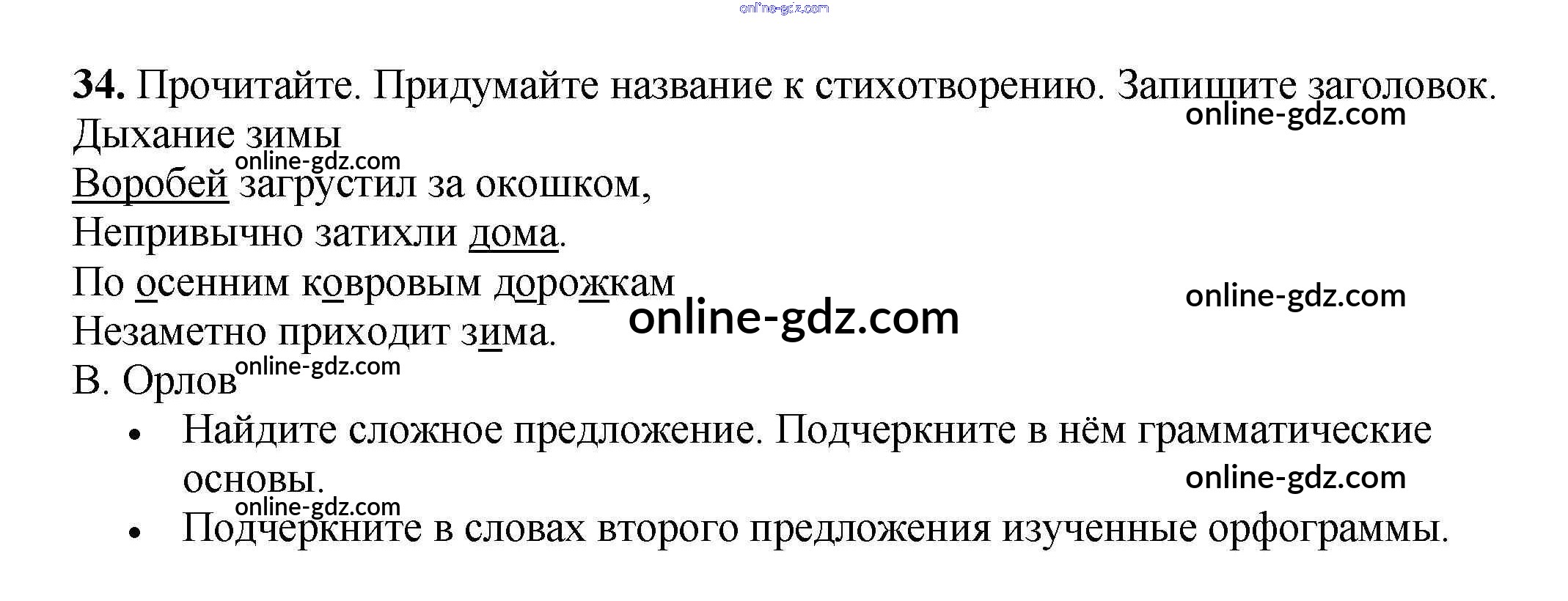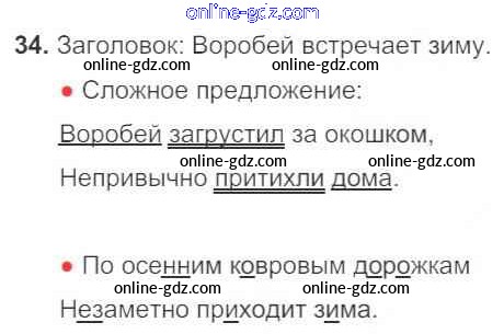 Готовые домашние задания по Русскому языку за 3 класс Рабочая тетрадь Канакина Школа России 2012 - Часть 1. Упражнения 34
