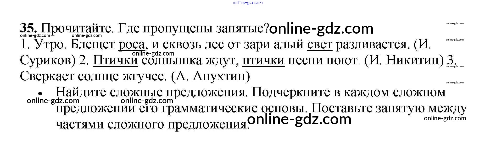 Готовые домашние задания по Русскому языку за 3 класс Рабочая тетрадь Канакина Школа России 2012 - Часть 1. Упражнения 35