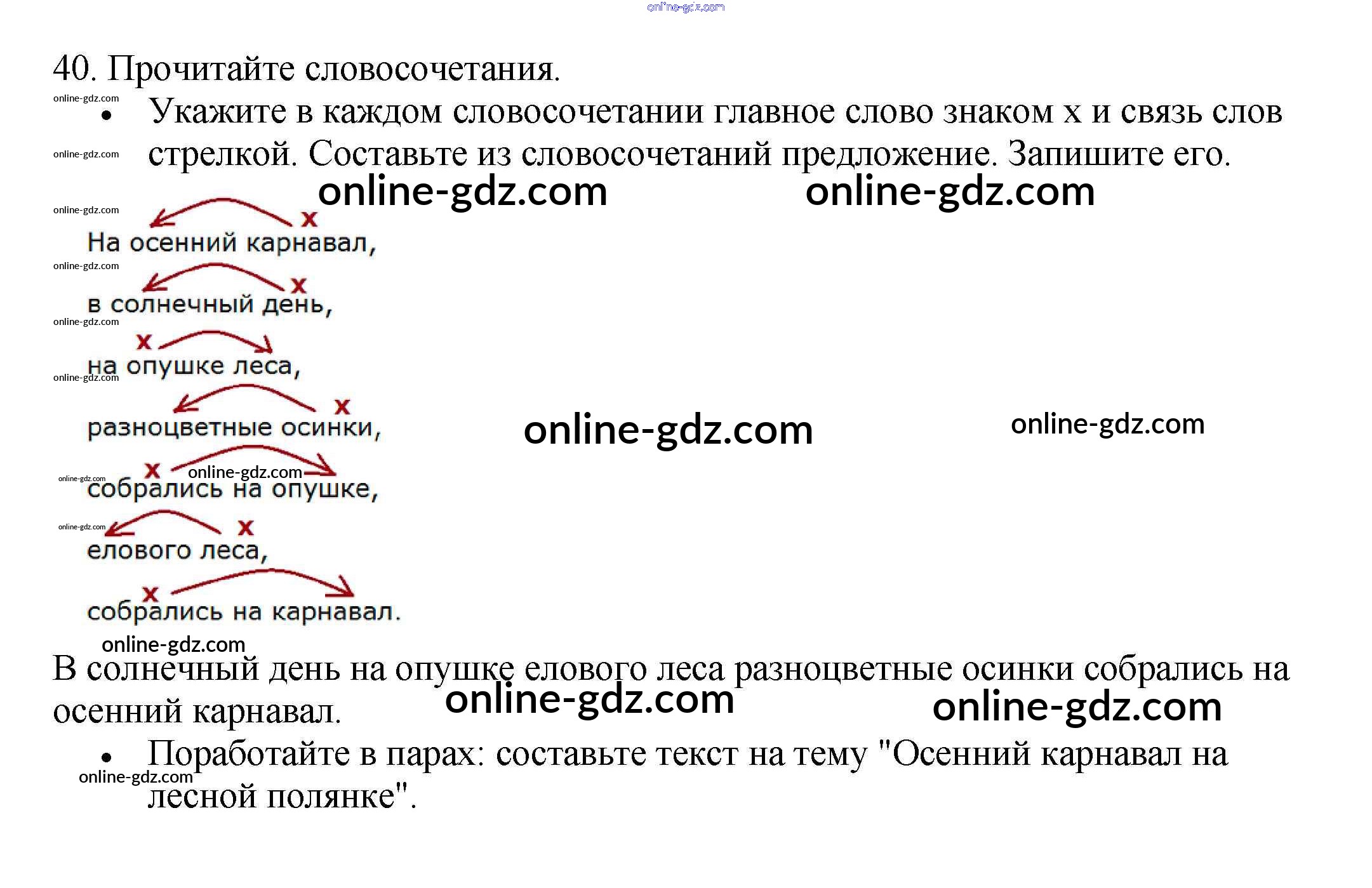 Готовые домашние задания по Русскому языку за 3 класс Рабочая тетрадь Канакина Школа России 2012 - Часть 1. Упражнения 40