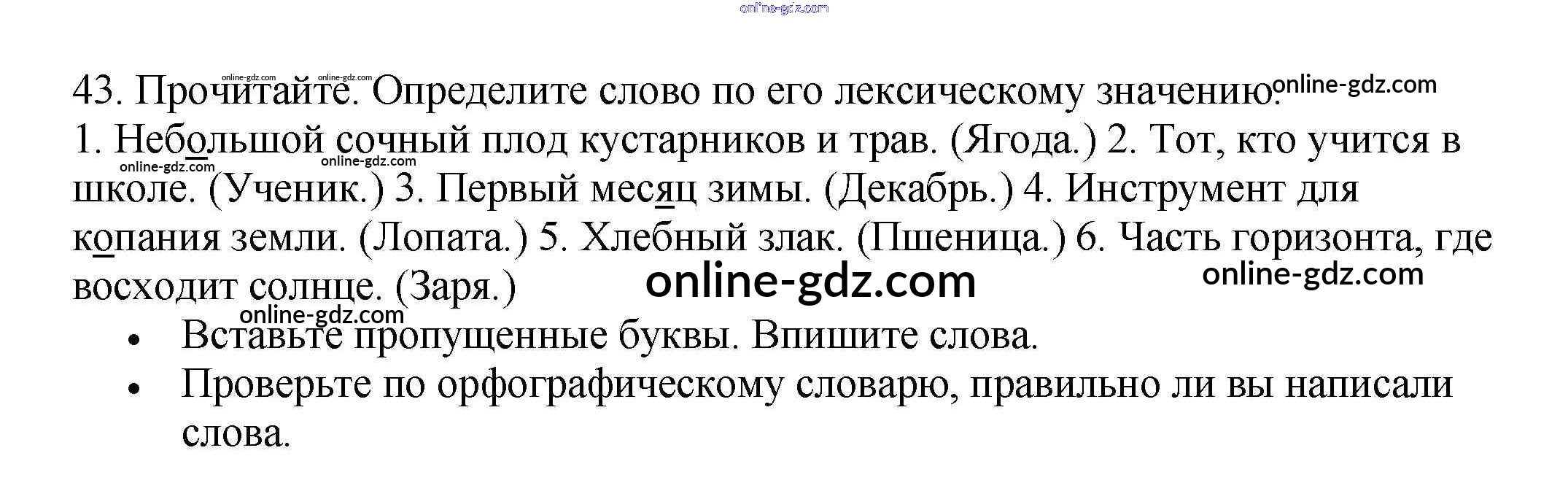 Готовые домашние задания по Русскому языку за 3 класс Рабочая тетрадь Канакина Школа России 2012 - Часть 1. Упражнения 43