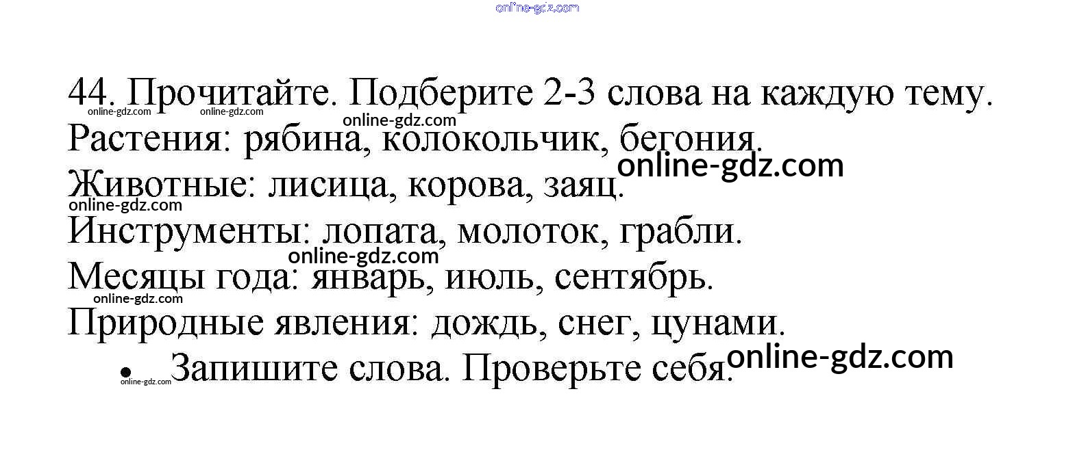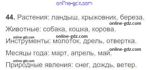Готовые домашние задания по Русскому языку за 3 класс Рабочая тетрадь Канакина Школа России 2012 - Часть 1. Упражнения 44