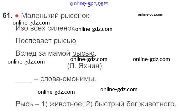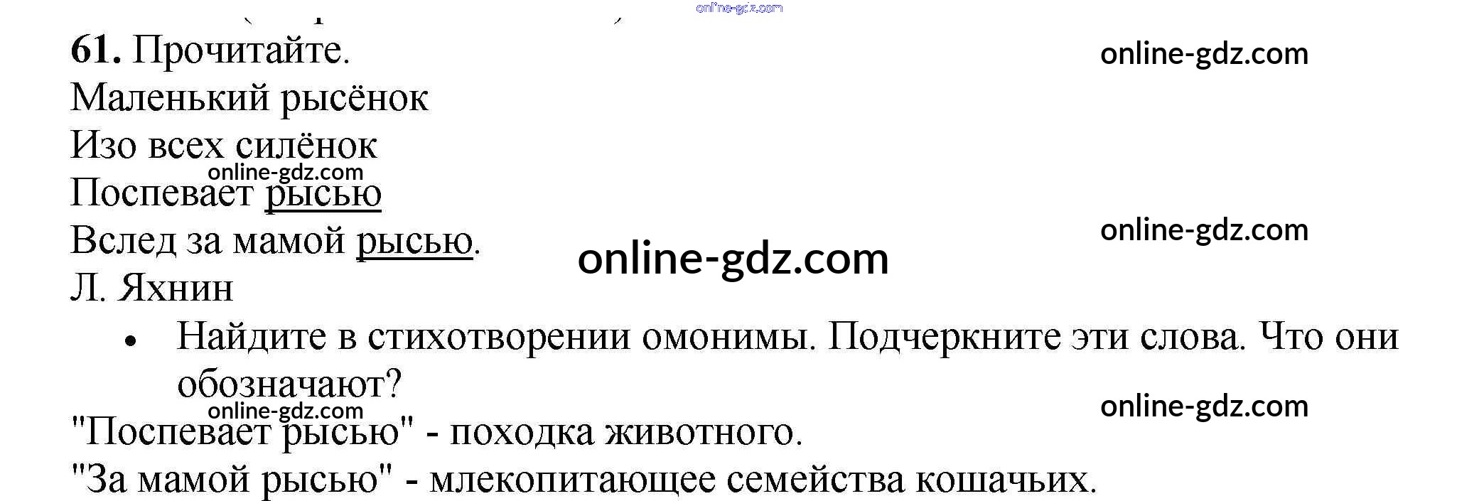 Готовые домашние задания по Русскому языку за 3 класс Рабочая тетрадь Канакина Школа России 2012 - Часть 1. Упражнения 61