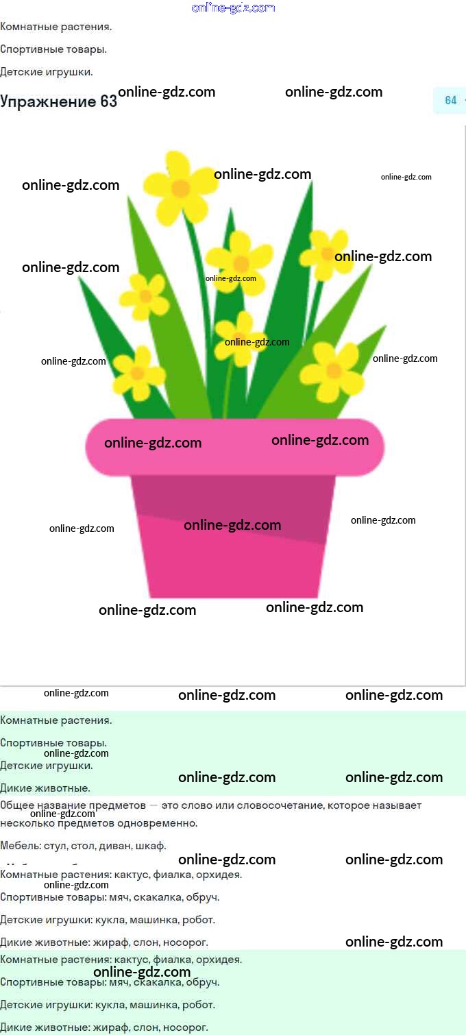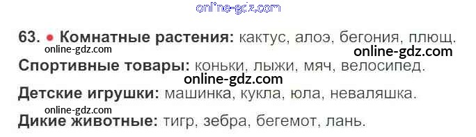 Готовые домашние задания по Русскому языку за 3 класс Рабочая тетрадь Канакина Школа России 2012 - Часть 1. Упражнения 63