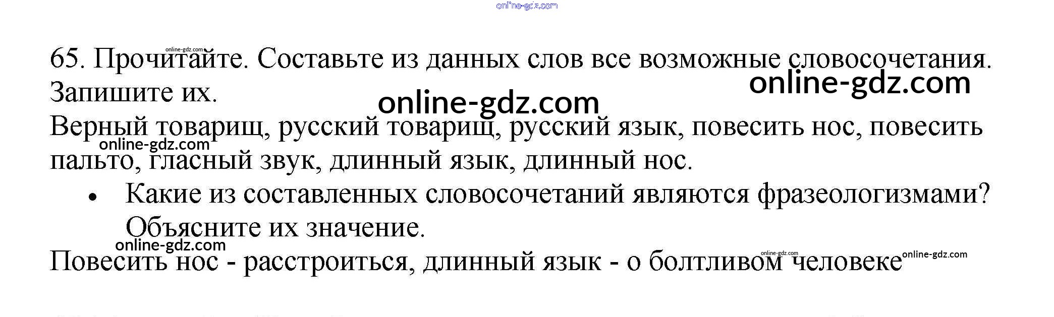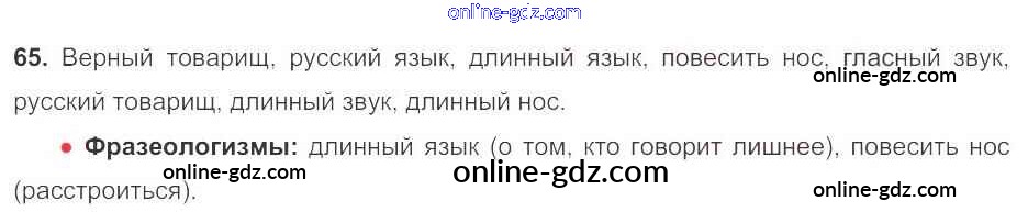 Готовые домашние задания по Русскому языку за 3 класс Рабочая тетрадь Канакина Школа России 2012 - Часть 1. Упражнения 65