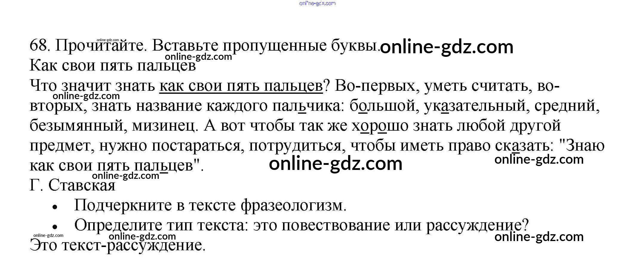 Готовые домашние задания по Русскому языку за 3 класс Рабочая тетрадь Канакина Школа России 2012 - Часть 1. Упражнения 68