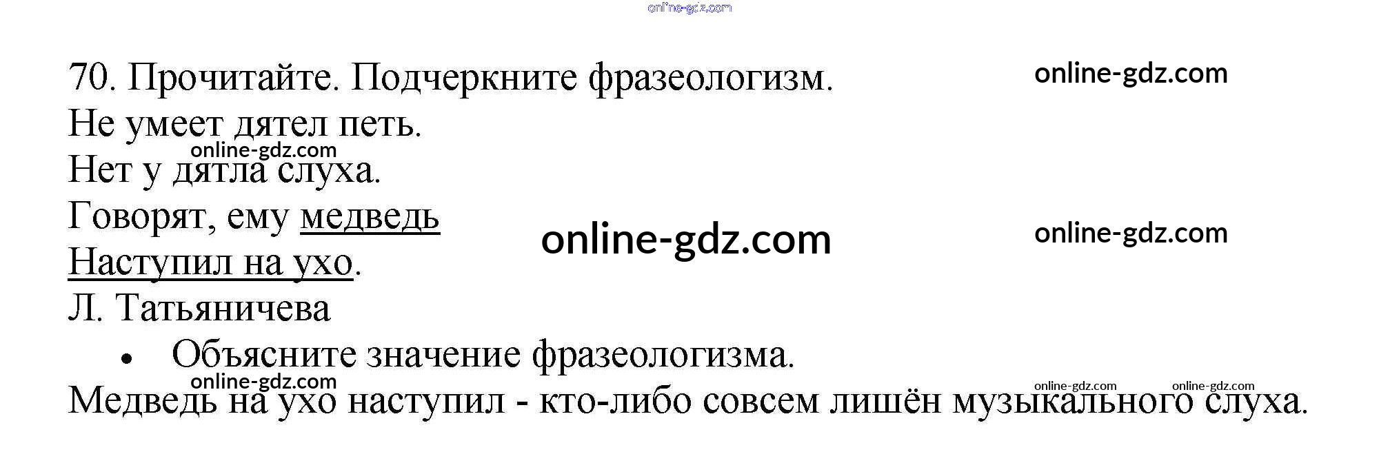 Готовые домашние задания по Русскому языку за 3 класс Рабочая тетрадь Канакина Школа России 2012 - Часть 1. Упражнения 70