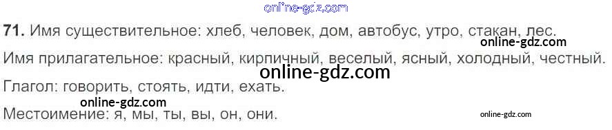 Готовые домашние задания по Русскому языку за 3 класс Рабочая тетрадь Канакина Школа России 2012 - Часть 1. Упражнения 71