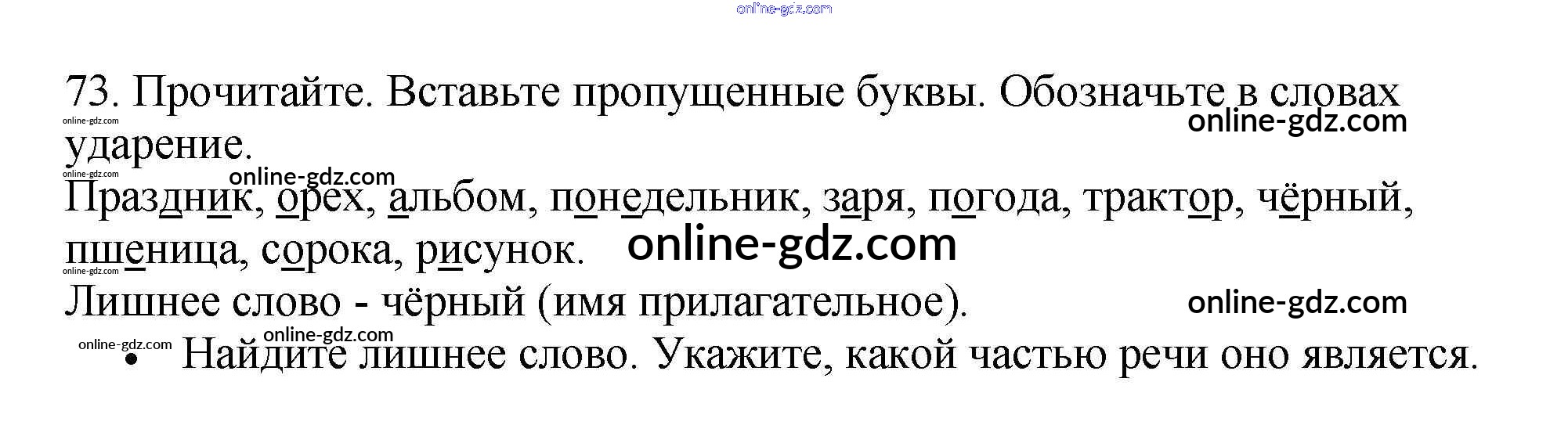 Готовые домашние задания по Русскому языку за 3 класс Рабочая тетрадь Канакина Школа России 2012 - Часть 1. Упражнения 73