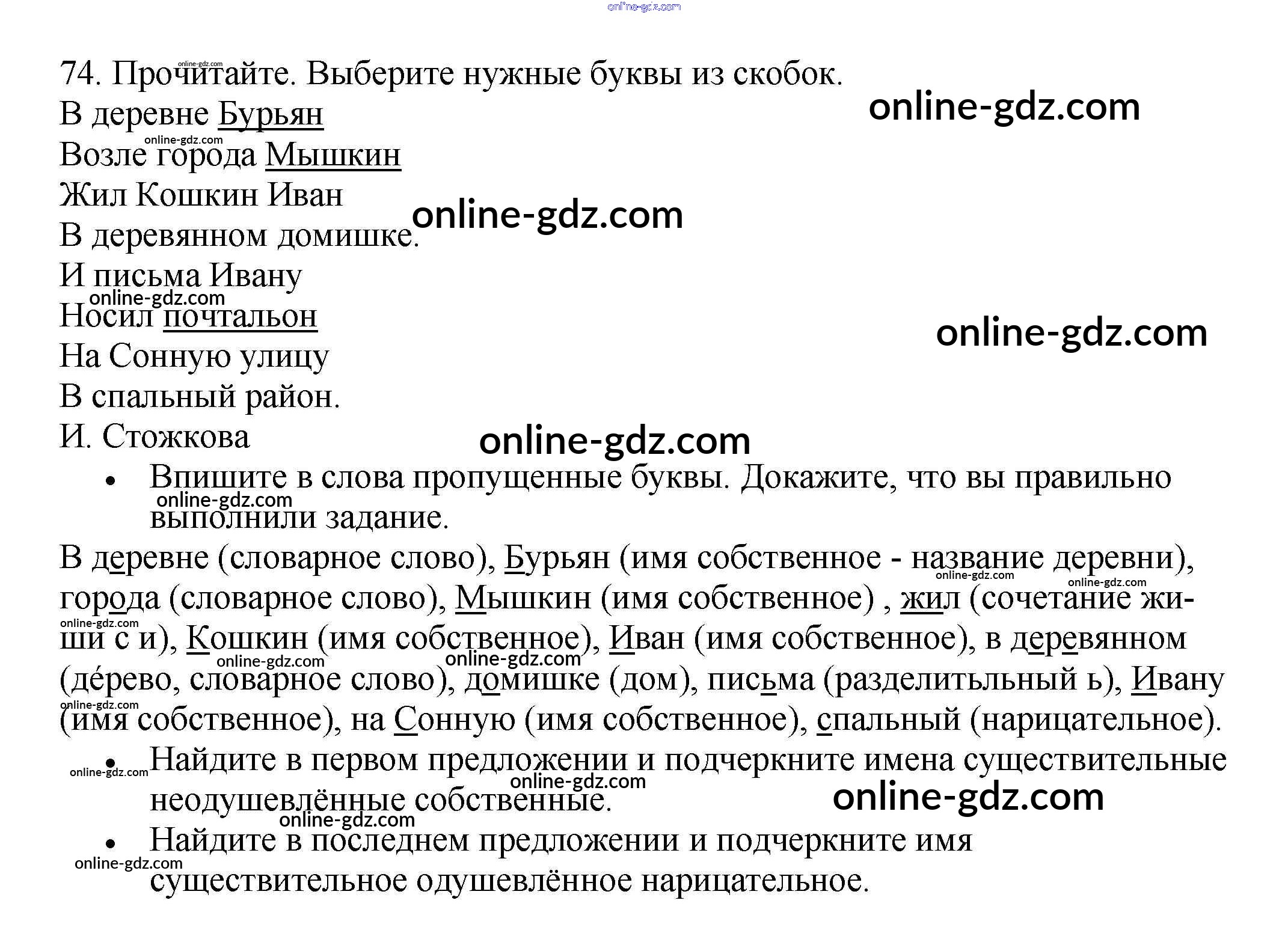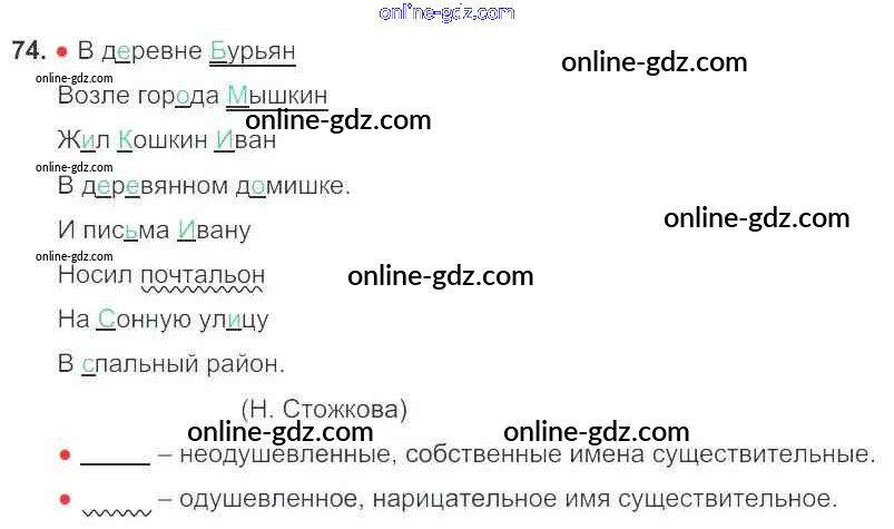 Готовые домашние задания по Русскому языку за 3 класс Рабочая тетрадь Канакина Школа России 2012 - Часть 1. Упражнения 74